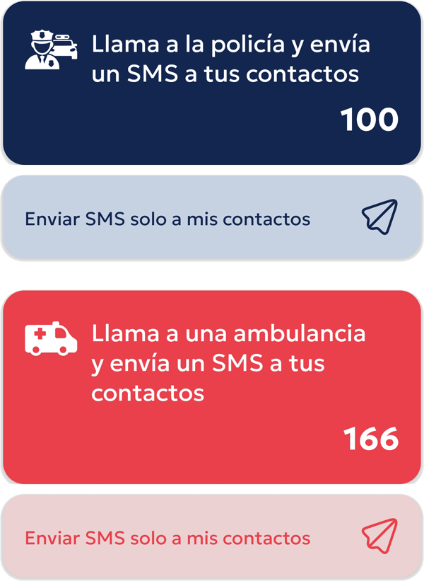 La aplicación llama a los servicios de emergencia y actualiza tus contactos con un mensaje y ubicación.